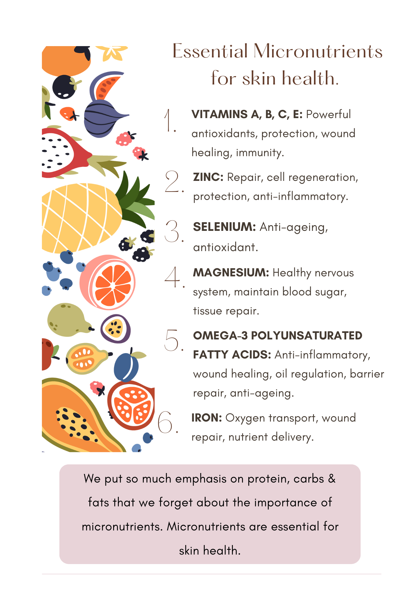 This is a comprehensive evidence based guide addressing key nutrients that support skin health, reduce inflammation & slow the signs of ageing.